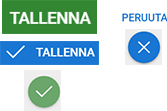 Tallennukseen ja peruuttamiseen käytetään järjestelmässä joko tekstikuvakkeita tai x-kirjainta ja valintamerkkikuvaketta (katso kuva alla). Ilmoitusluontoisissa laatikoissa peruuta-kuvake saa rinnalleen OK-kuvakkeen, jolla ilmoitus kuitataan vastaanotetuksi.